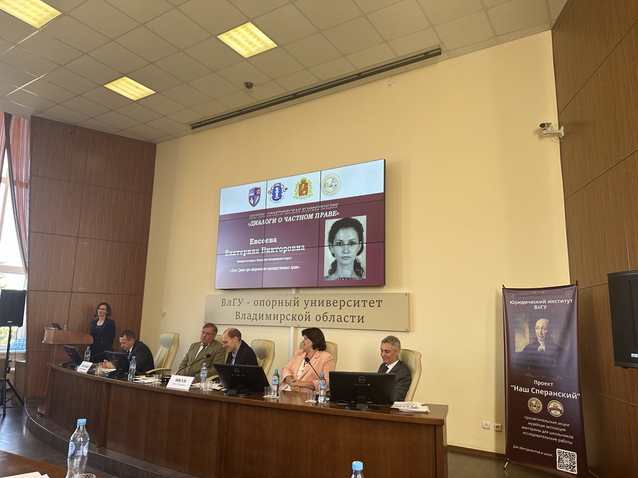 В свою очередь, 26 сентября состоялась научно-практическая конференция «Диалоги о частном праве», организаторами которой выступили Исследовательский центр частного права им. С. С. Алексеева, Владимирское региональное отделение АЮР, правительство Владимирской области и Владимирский государственный университет имени А. Г. и Н. Г. Столетовых.