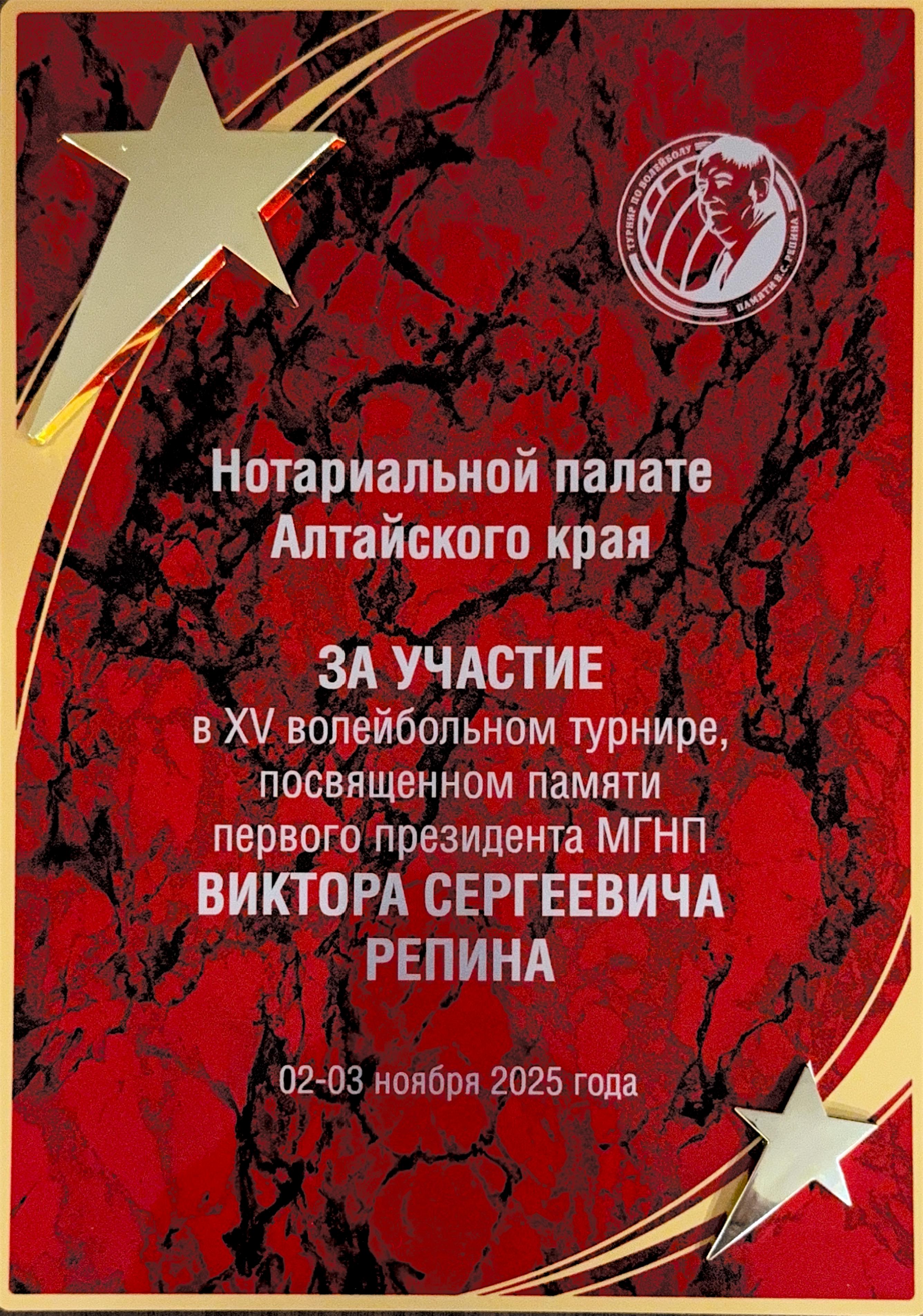 Ну, и поделимся еще одной новостью. На волейбольном турнире, посвященном памяти первого президента Московской городской нотариальной палаты Виктора Репина, в составе сборной команды, нотариус Михаил Перваков занял третье место. Этот турнир проводится ежегодно и собирает самых сильных волейболистов –нотариусов.