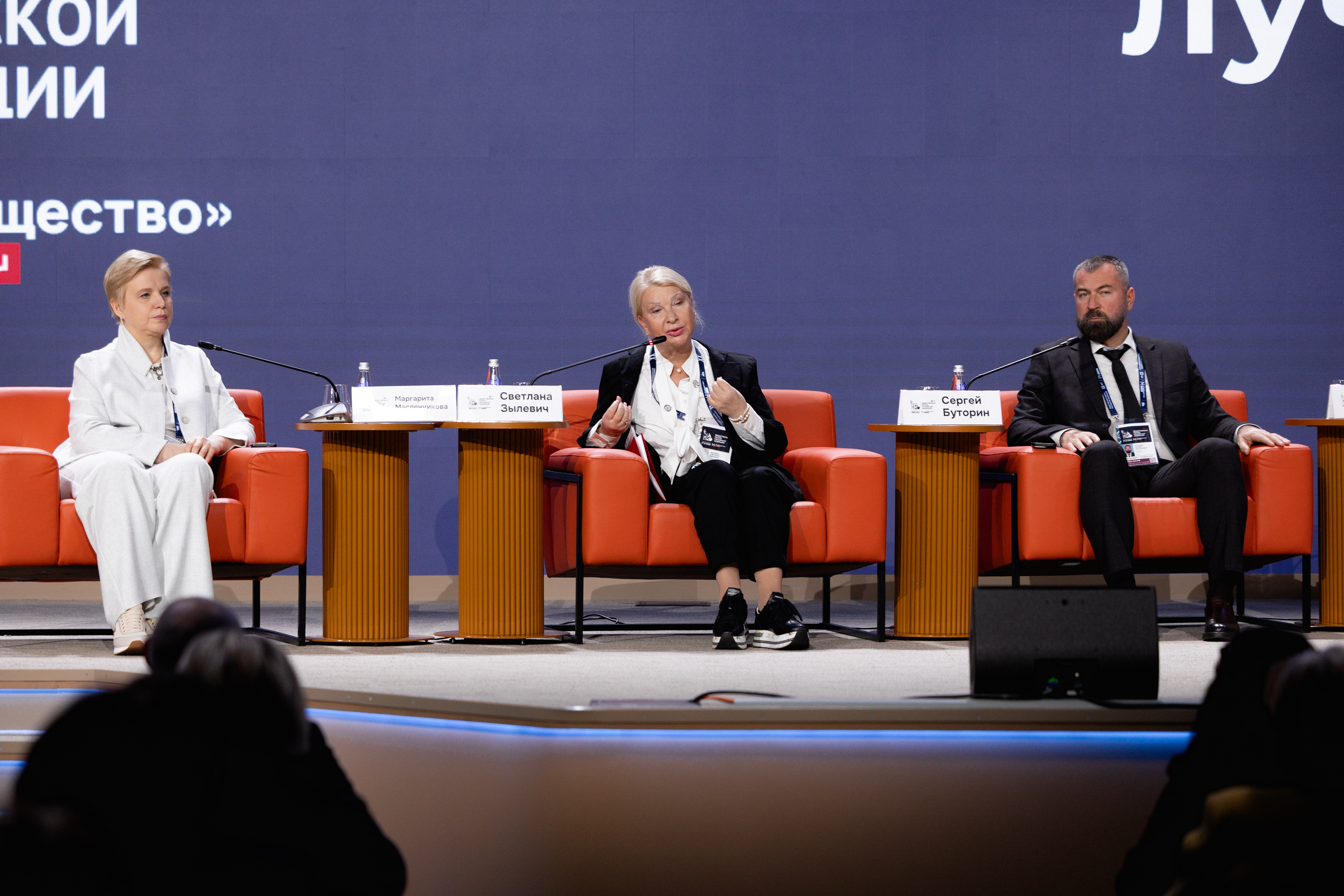Спикер рассказал и о различных патриотических мероприятиях, которые проводятся в парках России, проекте по мемориальным памятникам, гуманитарной миссии «80 посылок Победы» для участников СВО, большом проекте «Герои нашего времени» — документальных фильмах, которые снимаются «прямо с передка». Также Сергей Буторин остановился на гуманитарном проекте «Дети без войны»: «Речь идет о детях, которые живут на линии боевого соприкосновения в Запорожской области. Мы стали привозить их в более спокойные места, например, в Татарстан, где ребята участвовали в образовательных и развлекательных программах, чувствовали себя комфортно и спокойно».