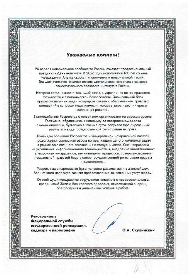 Поздравил нотариусов и Председатель Государственной думы Вячеслав Володин«Оказывая квалифицированную юридическую помощь, вы многое делаете для защиты прав и законных интересов граждан. Это особенно важно в борьбе с мошенничеством. Внедрение цифровых технологий, компетентность и ответственное отношение к делу нотариусов способствуют повышению качества предоставляемых услуг. Желаю успехов и всего самого доброго».