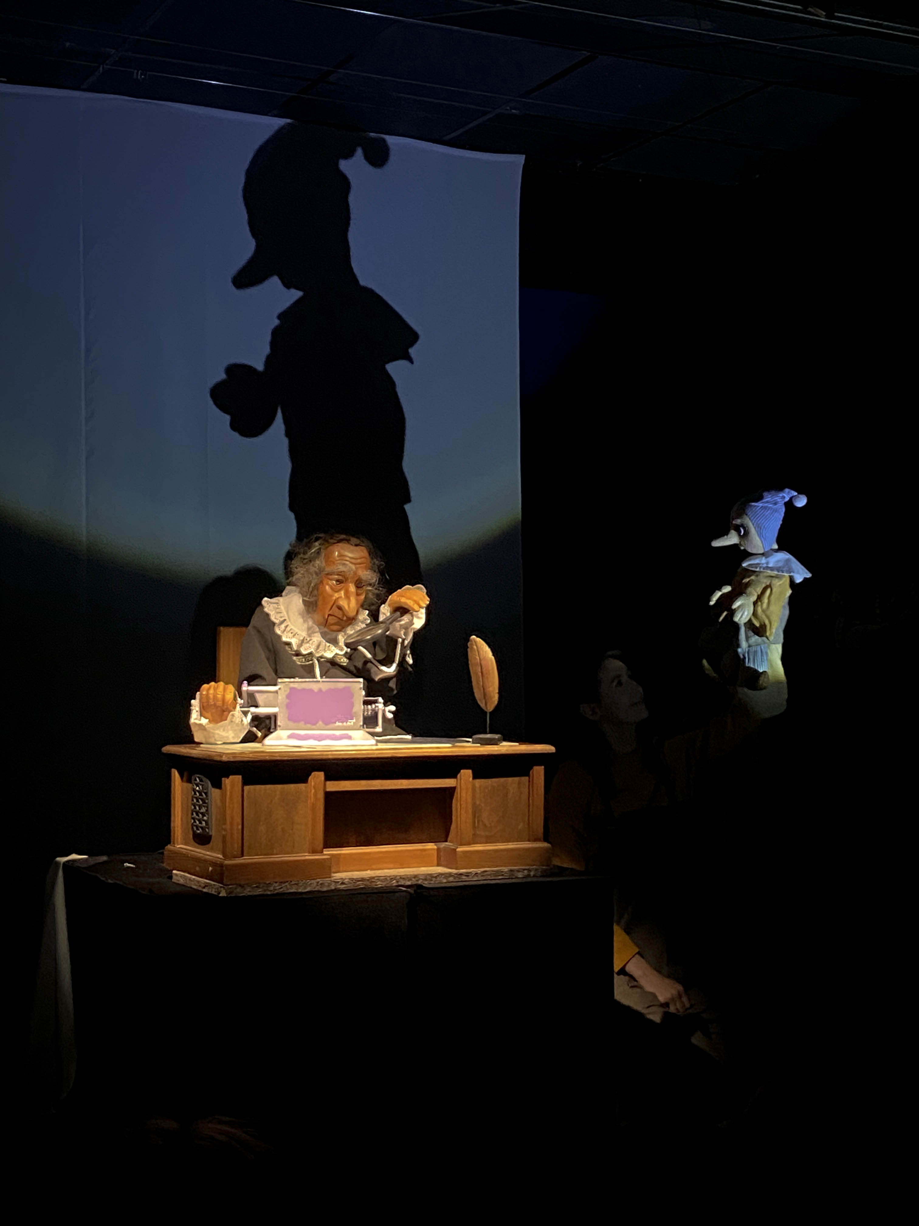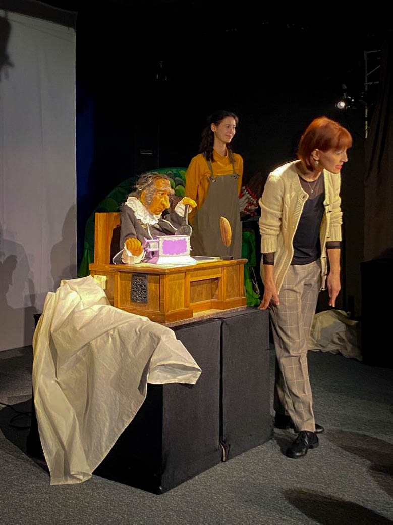 Главной особенностью спектакля стали его «артисты». Добрый Сказочник -кукла, предоставленная театру нотариусом Вадимом Комаровым, рассказывал юридические сказки. Сюжет перенес зрителей на таинственный чердак, где дети нашли кукол, а включив одну из них, окунулись в мир права через знакомые сказки.